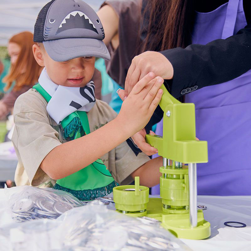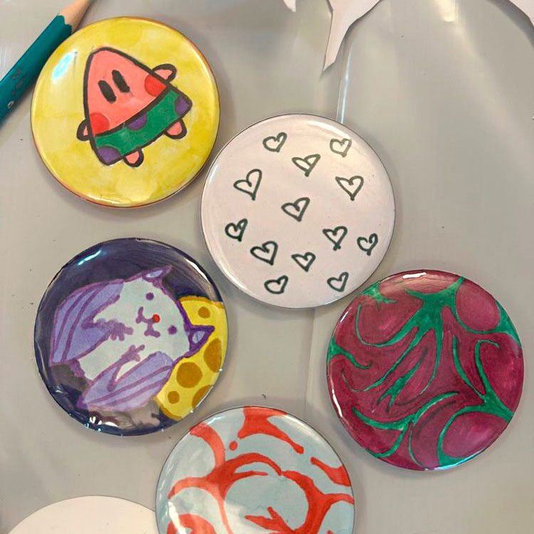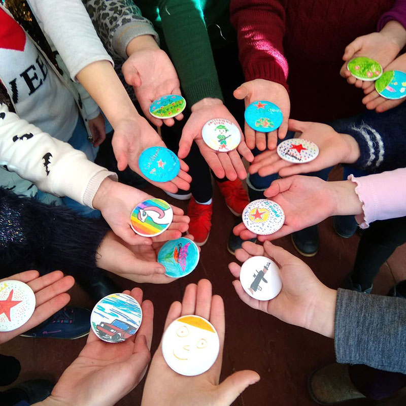 Ребята нарисуют свои дизайны, затем вырежут самые понравившиеся, после чего соберут значок в специальной машинке. Рисунок на значке защищен пленкой, поэтому долговечен. Все участники получают по 2 значка. Значки получаются очень милыми, сохраняя детские рисунки, станут любимым аксессуаром!